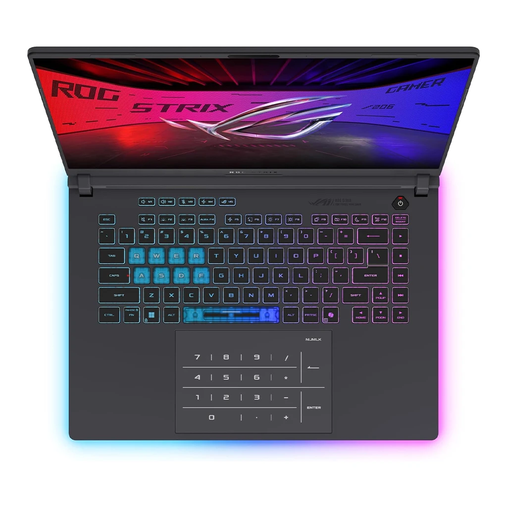 - Clavier : Rétroéclairage RGB per-key (via Armoury Crate), touches ergonomiques, course 1,8 mm, pavé numérique intégré
